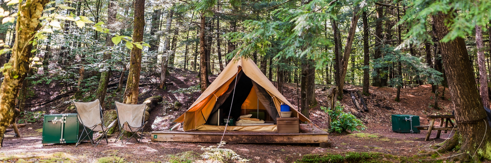 Une tente équipée avec un plancher en bois - l'ultime expérience de camping.