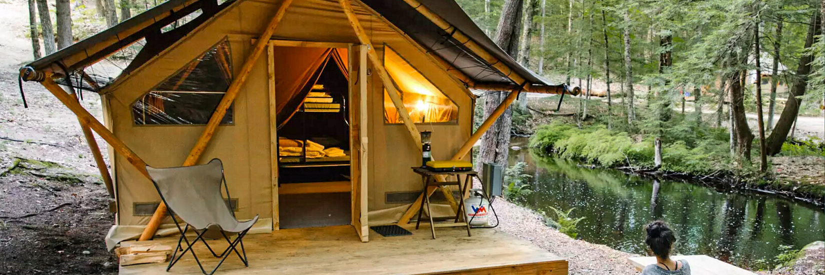 La Canadienne Origine, notre première tente en Amérique du Nord, et uniquement disponible au Canada. La Canadienne est inspirée des habitats de trappeurs du Grand Nord pour vous permettre de vivre dans et avec la nature en « jouant au campeur ». Son ossature et son plancher en bois ainsi que son revêtement en toile vous garantissent une étanchéité totale pour un séjour 100% confort.