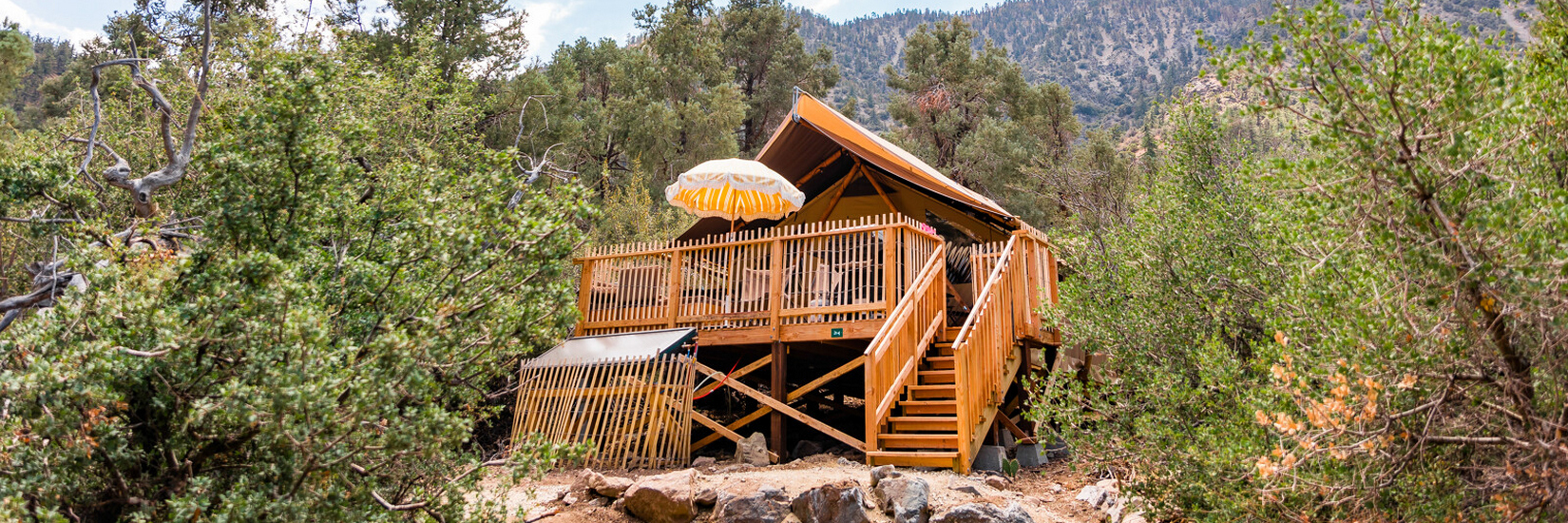 Dans cette Tente Toile & Bois design et tout confort vous vivez la nature en toute liberté ! A l’extérieur, profitez de votre large terrasse privée avec barbecue, évier extérieur et salon de jardin. A l’intérieur, ses deux chambres, sa cuisine équipée et son coin repas et surtout, sa salle de bain privée à l’arrière de la tente, vous garantissent des vacances en toute sérénité. Le paradis !