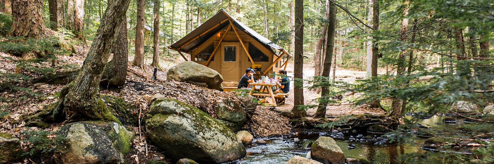Dans cette Tente Toile & Bois design et tout confort vous vivez la nature en toute liberté ! A l’extérieur, profitez de votre trou à feu individuel ainsi que d’un barbecue et une table de pique-nique. A l’intérieur, ses deux chambres, sa cuisine équipée et son coin repas et surtout, sa salle de bain, vous garantissent des vacances en toute sérénité. Le paradis !