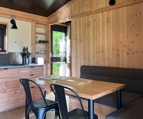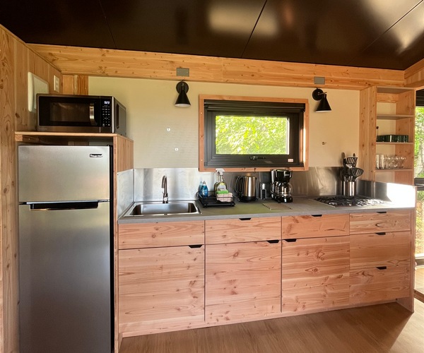 Vivez une expérience des plus confortables dans nos Sierra Tiny House. De la construction en bois massif de qualité aux salles de bains et cuisines équipées, chaque hébergement offre l’équilibre parfait entre confort et commodité en pleine nature. Pensé pour les familles, ce logement offre tout le confort nécessaire : une chambre parentale avec lit queen et une chambre enfants avec trois lits simples superposés. Elles sont également équipées d’un poêle à bois, ainsi que de chauffages électriques.
