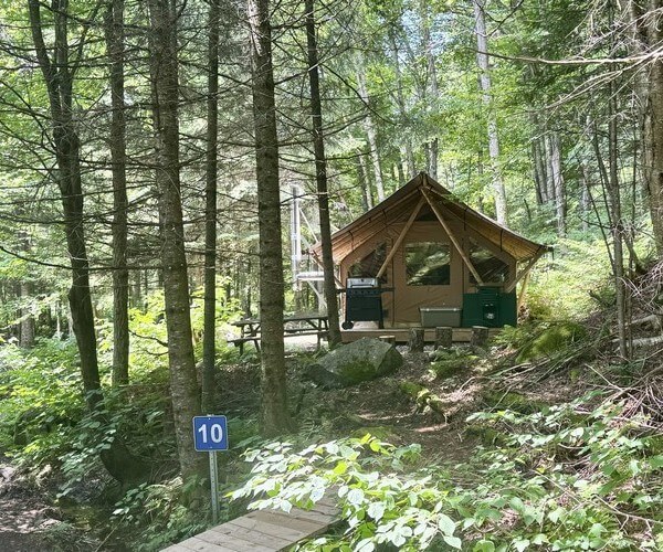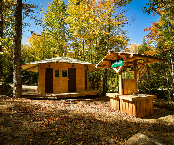 À noter : les emplacements se situent à environ 2 km de l’accueil Huttopia et disposent d’eau courante non potable ainsi que de toilettes sèches communes. Des sanitaires avec douches et eau potable sont disponibles sur le site Huttopia ainsi qu’au pavillon du Parc Éco-Laurentides.