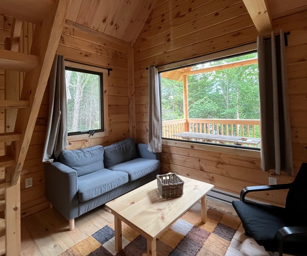 2 chambres | Coin cuisine | Electricité | Salle de bain | Poêle à bois | BBQ | Table de pique-nique | Trou à feu
