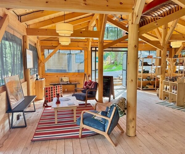 Notre pavillon central est doté d’un espace salon avec canapés confortables, étagères bien garnies de jeux de société, livres et plus encore.