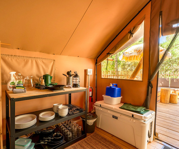 À noter : deux zones de camping sont disponibles : Coulter Pine et Red Rock. Les Trappeurs en zone Red Rock ont la particularité d’être équipées de panneaux solaires et de chauffe-eaux solaires.