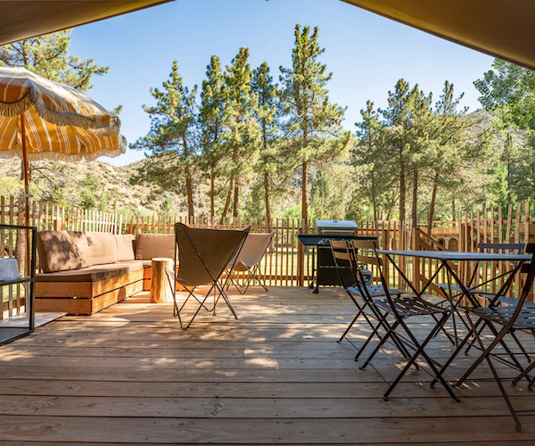 Chez Huttopia Paradise Springs, nous réinventons le glamping en Californie du Sud. Oubliez les tentes exiguës et les sacs de couchage peu confortables. Ici, vous dormez dans des hébergements spacieux et tous équipés, dotés de vrais lits confortables, de terrasses en bois privatives et de commodités modernes, le tout niché dans un écrin de verdure au cœur de la forêt nationale d’Angeles. Chaque tente est soigneusement positionnée pour préserver votre intimité tout en vous offrant une connexion directe avec la nature.