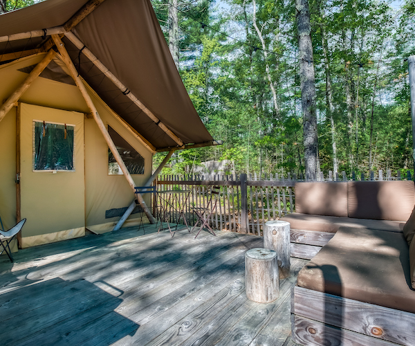 Installé au cœur d’une forêt de pins majestueuse et bordé d’un paisible étang d’eau douce, notre site unique vous propose une expérience de glamping inoubliable dans le sud du Maine, à seulement quelques minutes des charmantes villes côtières comme Kennebunkport et Wells, et à seulement 1h30 de Boston ! Nos tentes prêt-à-camper et tiny houses offrent calme, intimité et nature. Redécouvrez l’essence du camping… avec tout le confort moderne.