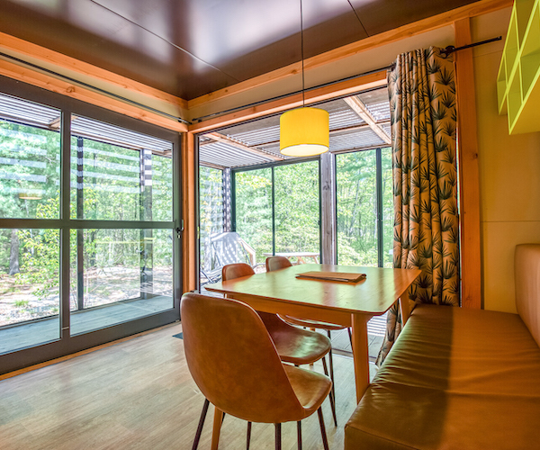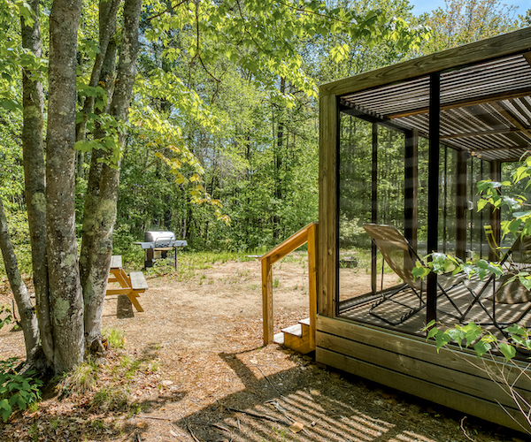Le summum du confort au cœur de la nature ! Nos Tiny House Vista offrent de grandes baies vitrées avec vue imprenable sur la forêt, un poêle à bois, une terrasse ajourée ainsi qu’un intérieur moderne et bien pensé. Un séjour des plus confortables vous attend dans le sud du Maine, entre océan et forêt.
